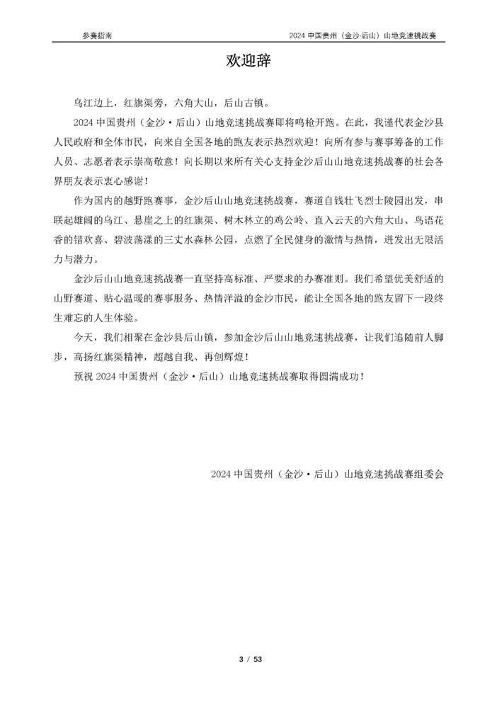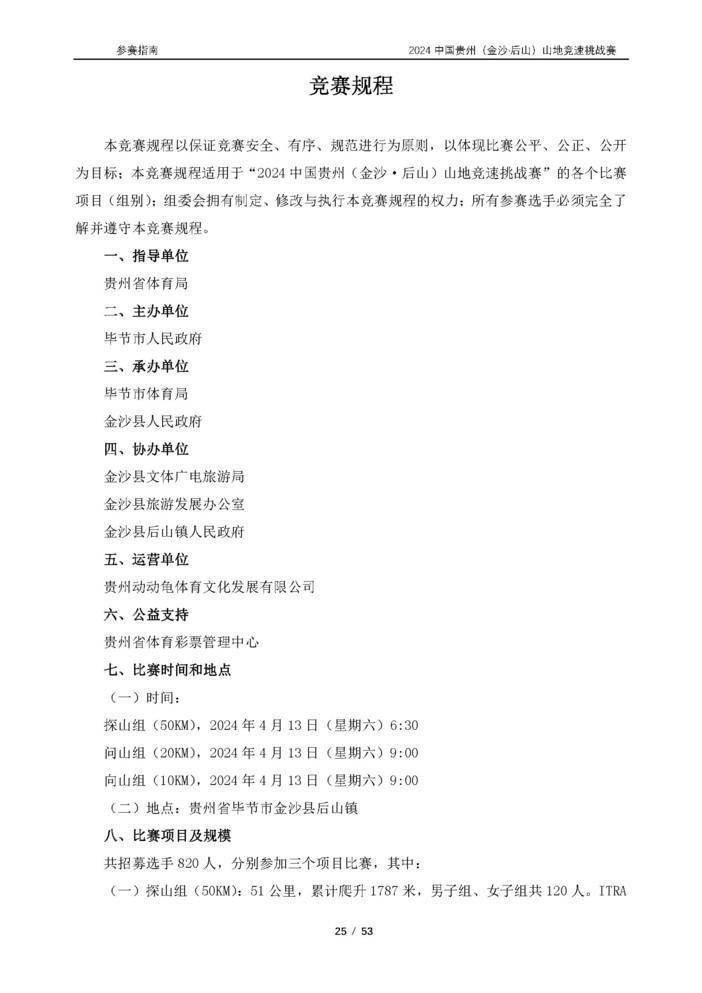 参赛指南 || 2024 中国贵州(金沙·后山)山地竞速挑战赛