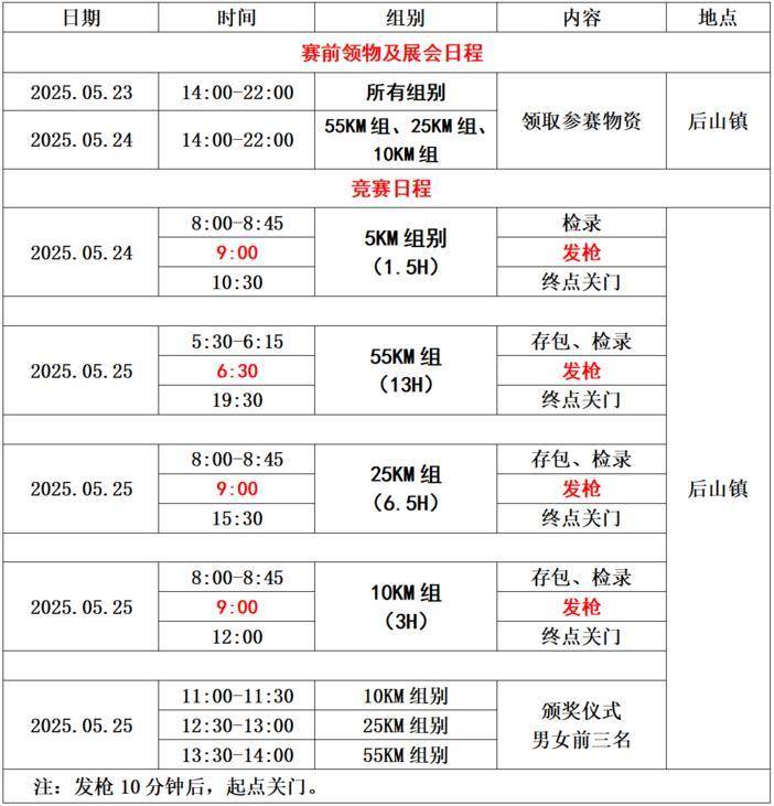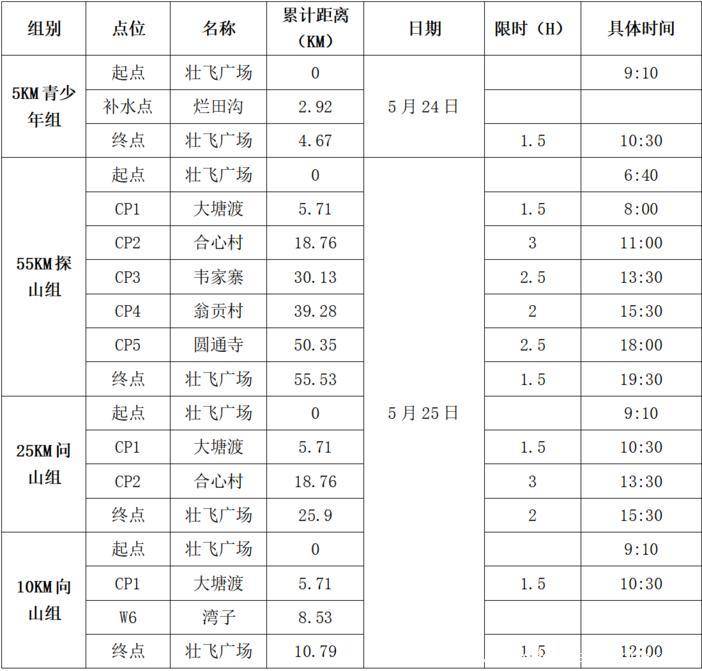 3、关门时间可能会因天气、延迟出发等因素进行临时调整,参赛选手需服从站点工作人员的管理。